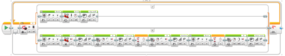 Robot má na kostce obrázek bomby a jede do doby, dokud se před ním neobjeví překážka. Poté vydá zvuk brzdy a otevře tlamu za pomocí motůrku, který je doprovázen hrůzostrašným řvoucím zvukem, po kterém dojde po vteřině ke kousnutí a vydání zvuku kousnutí. Poté se na kostce objeví výbuch, který doprovodí zvuk výbuchu. Nakonec se tlama vrátí do původní pozice a model se za doprovodu zvuku motor start znovu rozjede.
