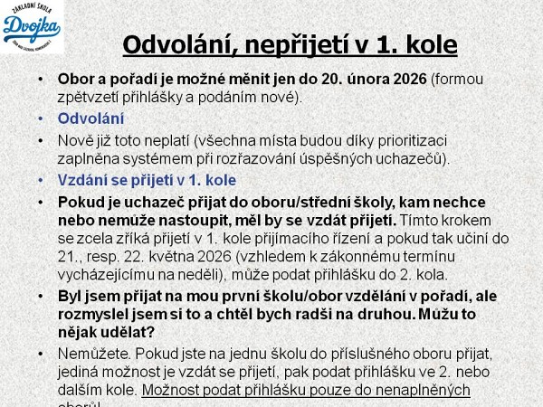 Přijímací řízení na SŠ pro šk. rok 2026/27