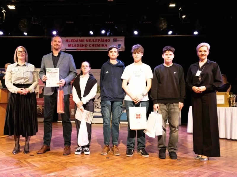 chemik - finálePět osmáků pod vedením p. uč. Nováka se ve čtvrtek 19. 2. vydalo do Pardubic na finále soutěže Mladý chemik. Obhajovali tam svůj projekt na téma Voňavá chemie.